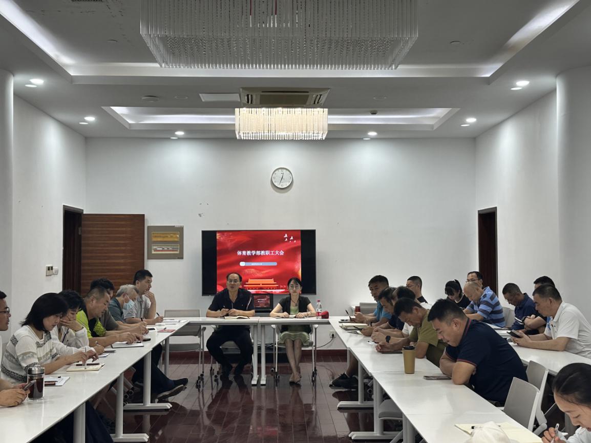 9月13日中午,体育教学部在A103召开新学期全体教职工大会。会议由邵长专主任主持,体育教学部党政领导及全体教职员工参会。