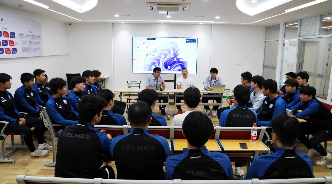 2023年11月3日,我校高水平足球队受邀前往上海国际港务(集团)股份有限公司冠东集装箱码头分公司进行观摩学习与足球交流赛。