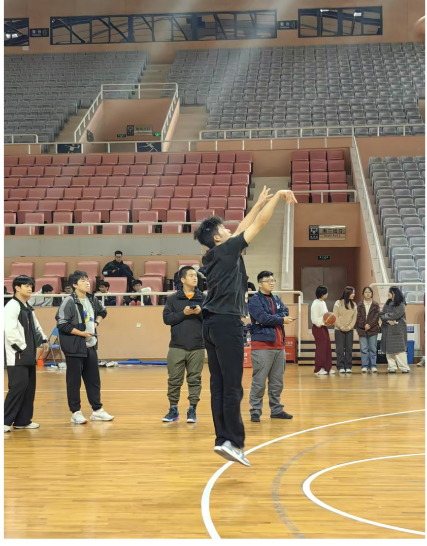 学校2024年秋季学期校园三分投篮赛于12 月4日下午在南苑体育馆举行。本次比赛由体育运动委员会主办,体育教学部、商船学院启航学生会体育部承办。本次比赛共有6支队伍参赛, 每支队伍有 8 名队员(其中 6名为场上队员, 2 名为替补队员)。
