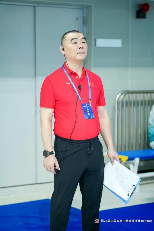 赵伟民老师受中国学生体育联合会大学游泳分会选派,执裁第24届中国大学生游泳锦标赛(南方赛区),并担任赛事检录长。他凭借丰富的执裁经验和对竞赛规则的精准把握,统筹全场参赛选手的检录工作,确保了赛事各环节的有序推进,展现出统领全局的专业能力和责任担当。