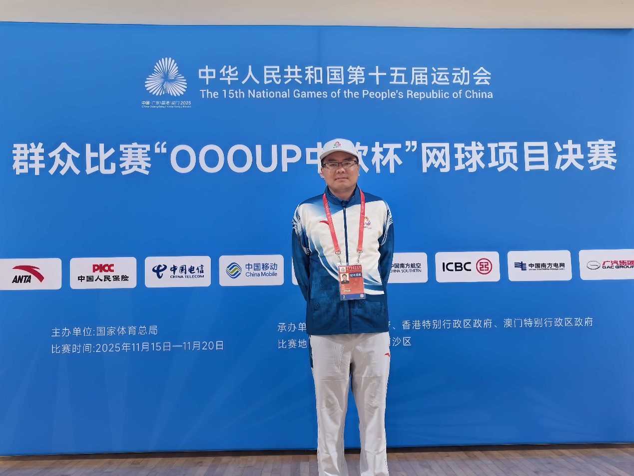 王振老师连续第二届受邀执裁第十五届全运会群众比赛网球项目决赛。在广州南沙国际网球中心举行的比赛中,面对来自全国的280名选手,他在高强度赛事中始终保持严谨态度,精准判断发球、落点与违例情况,以专业的执裁能力保障了赛事公平推进,其表现获得了组委会与参赛选手的高度评价。