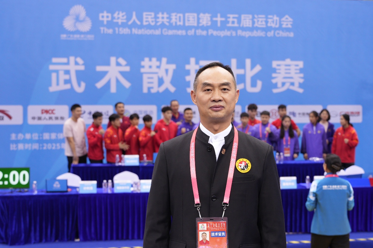 周乐其老师受邀执裁中华人民共和国第十五届全国运动会武术散打比赛。凭借扎实的专业功底和丰富的教学经验,他经过严格选拔,代表上海参与这一国内顶级赛事。赛前,他积极参与国家体育总局组织的专项培训,深入研习最新竞赛规则;赛事期间,他秉持“公平、公正、公开”原则,精准把控每个比赛环节,以专业的判罚尺度和严谨的工作态度赢得了参赛选手、教练及组委会的一致认可。