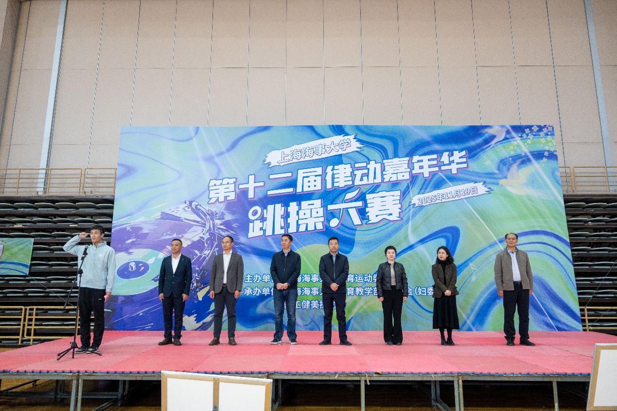 大赛在热烈氛围中拉开帷幕。李志鹏在致辞中表示,党的二十大提出加快建设体育强国,在海事大学,体育是十二年赛事中积淀的团队默契,是师生自发参与的运动热情,更是“海大人”骨子里蕴藏的活力底色。他指出,海大健美操队常年在全国及上海市各级健美操、啦啦操赛事中屡获佳绩,这份“敢拼敢赢”的竞技精神通过跳操大赛传递至校园每个角落,既是专业实力的大众化表达,也是学校“以体育人、以体聚魂”校园文化的生动实践。他希望以本次大赛为契机,进一步推广“健康第一”的教育理念,推动校园体育文化蓬勃发展。