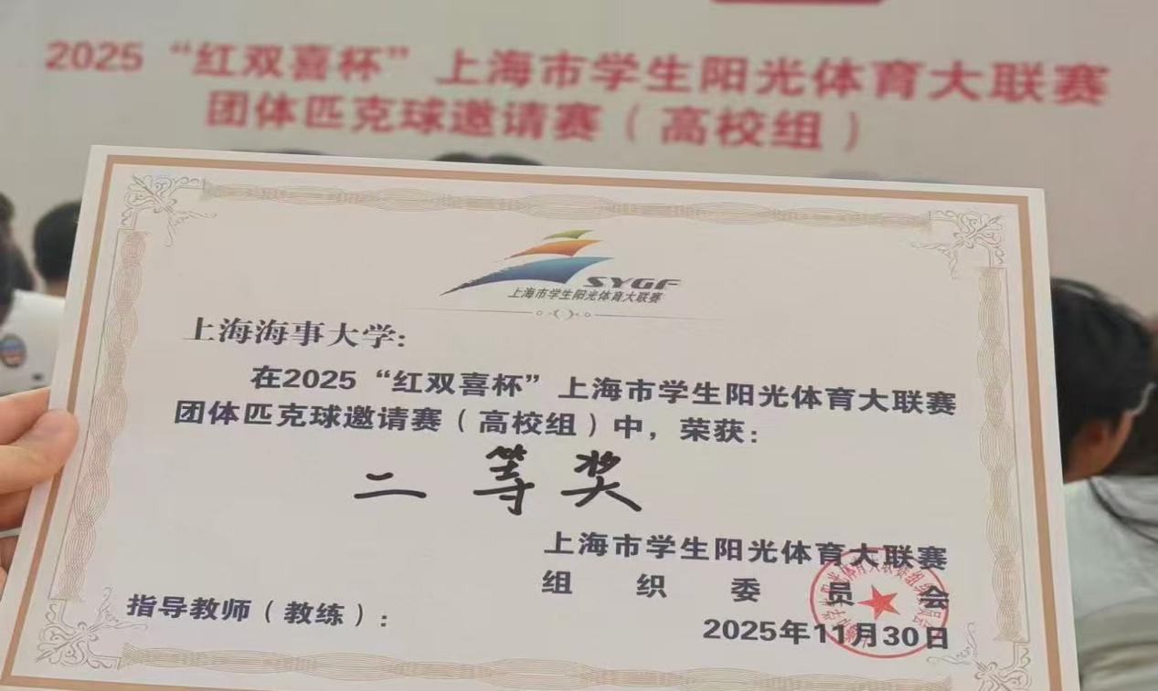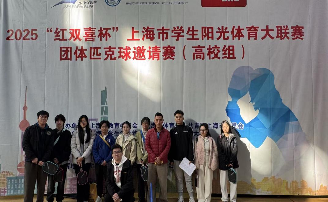 近日,2025年“红双喜杯”上海市学生阳光体育大联赛(高校组)匹克球邀请赛在上海外国语大学(松江校区)圆满落幕。本次赛事共吸引来自全市11所高校的代表队参与角逐。我校代表队在教练张公羽的带领下团结协作、奋勇争先,经过四轮二十场激烈比赛,最终荣获团体二等奖。